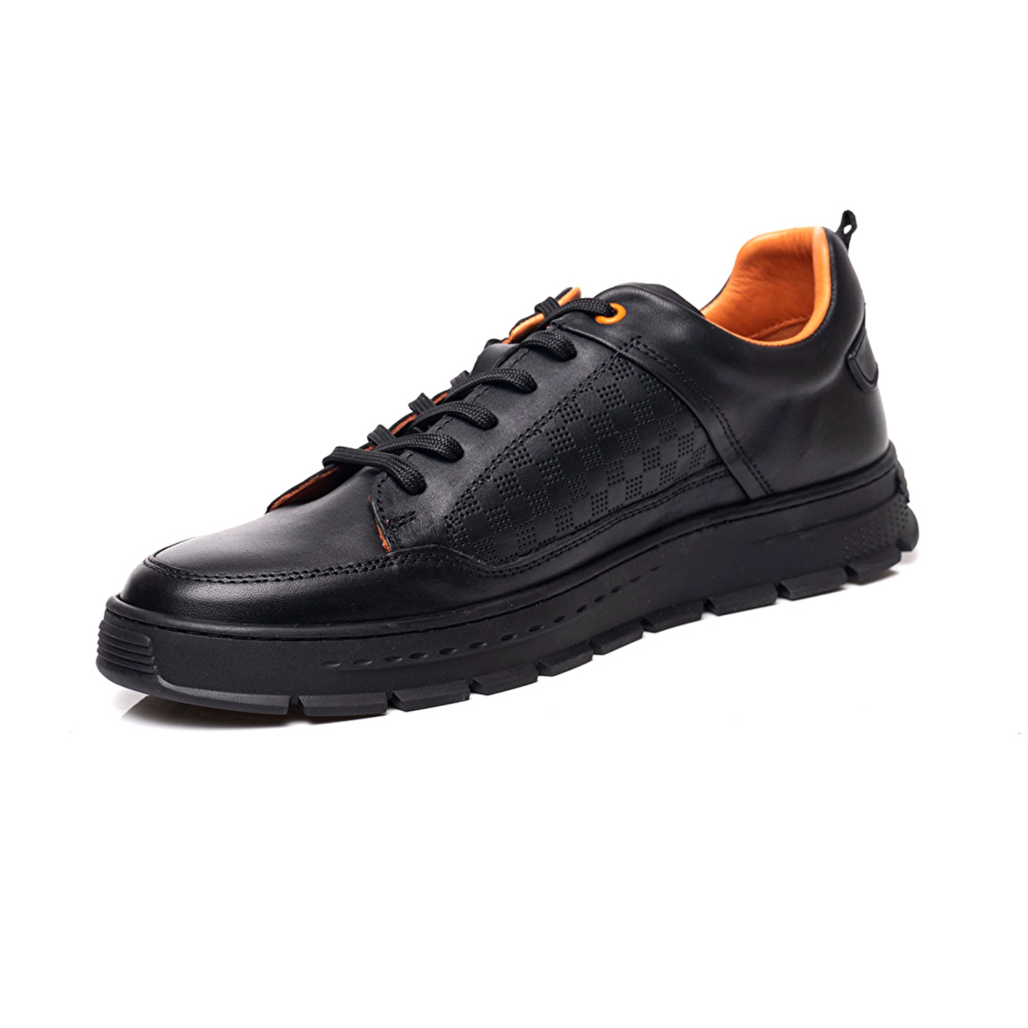Men's Black Genuine Leather Sneaker Shoes 3K1UA16380