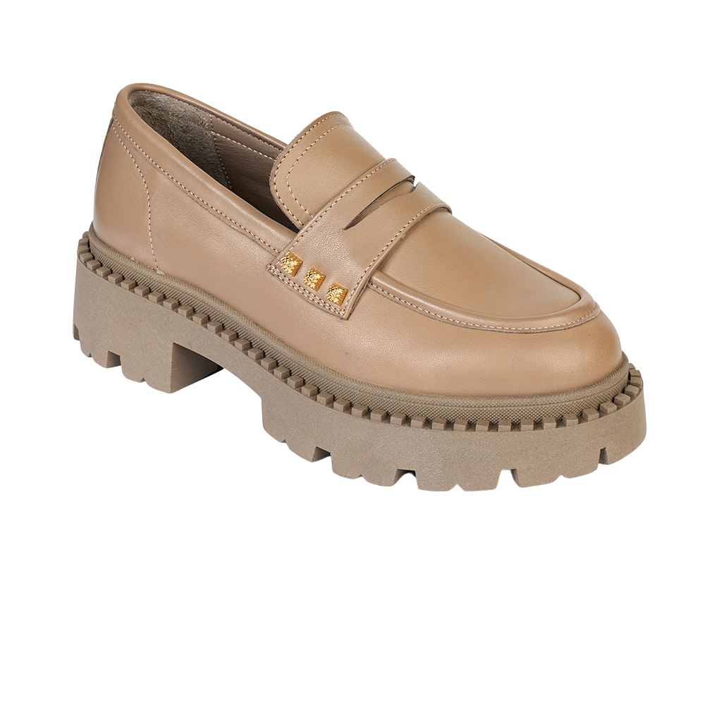 Women’s Dark Beige Genuine Leather Lofer Shoes 3K2CA32660