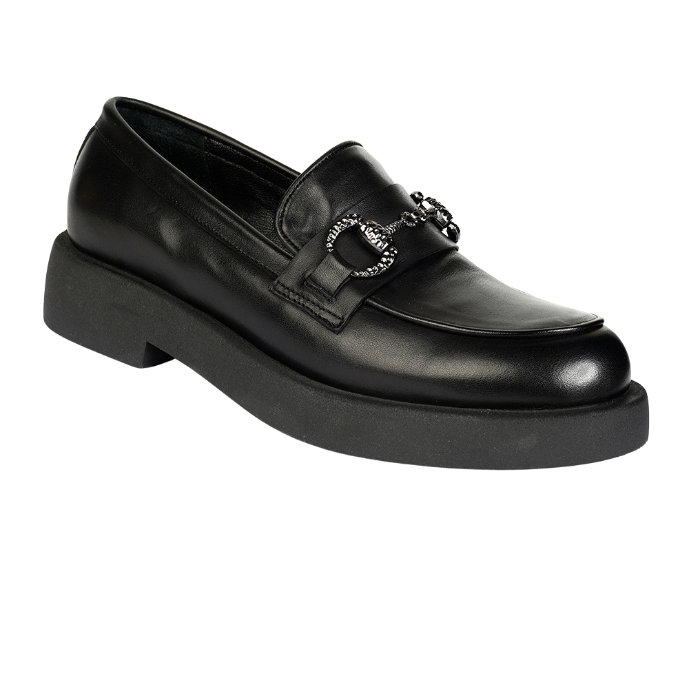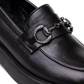 Women’s Black Genuine Leather Loafer Shoes 3K2UA72133