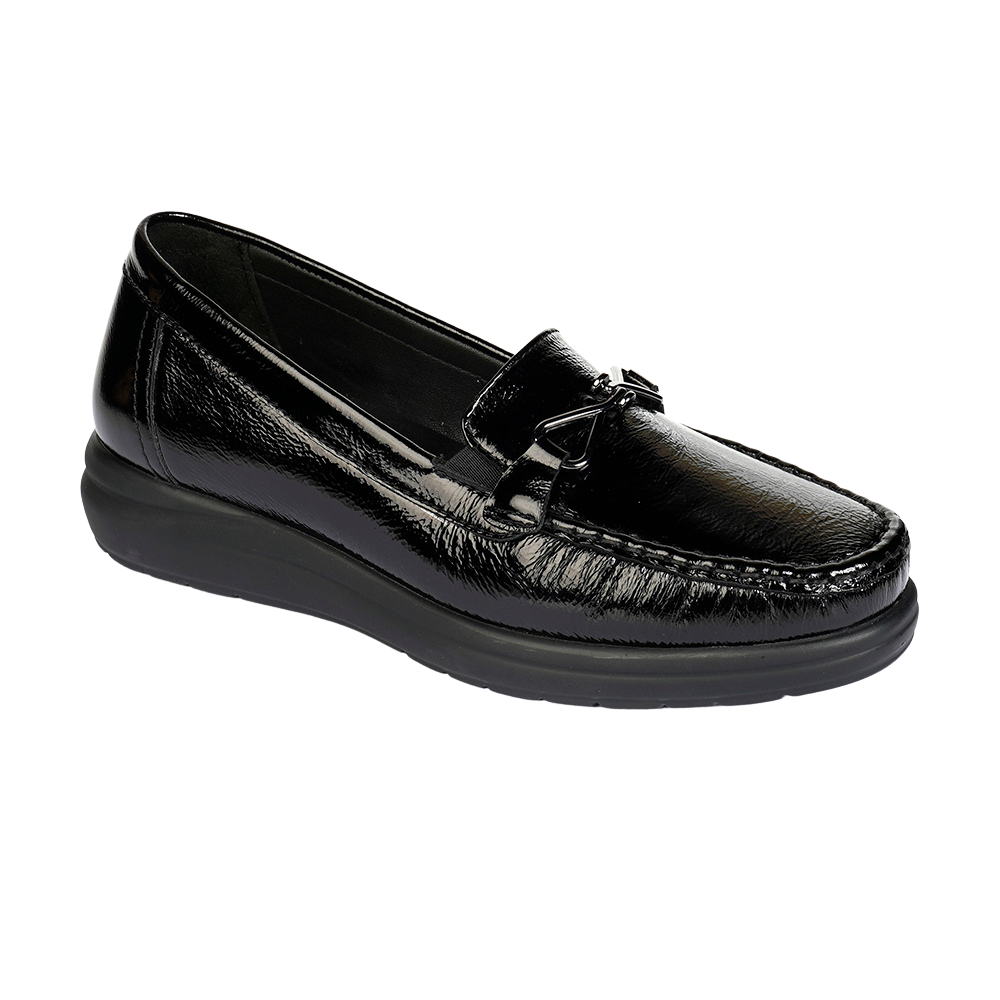 Women’s Shine Black Genuine Leather Comfort Shoes 3K2FA32690